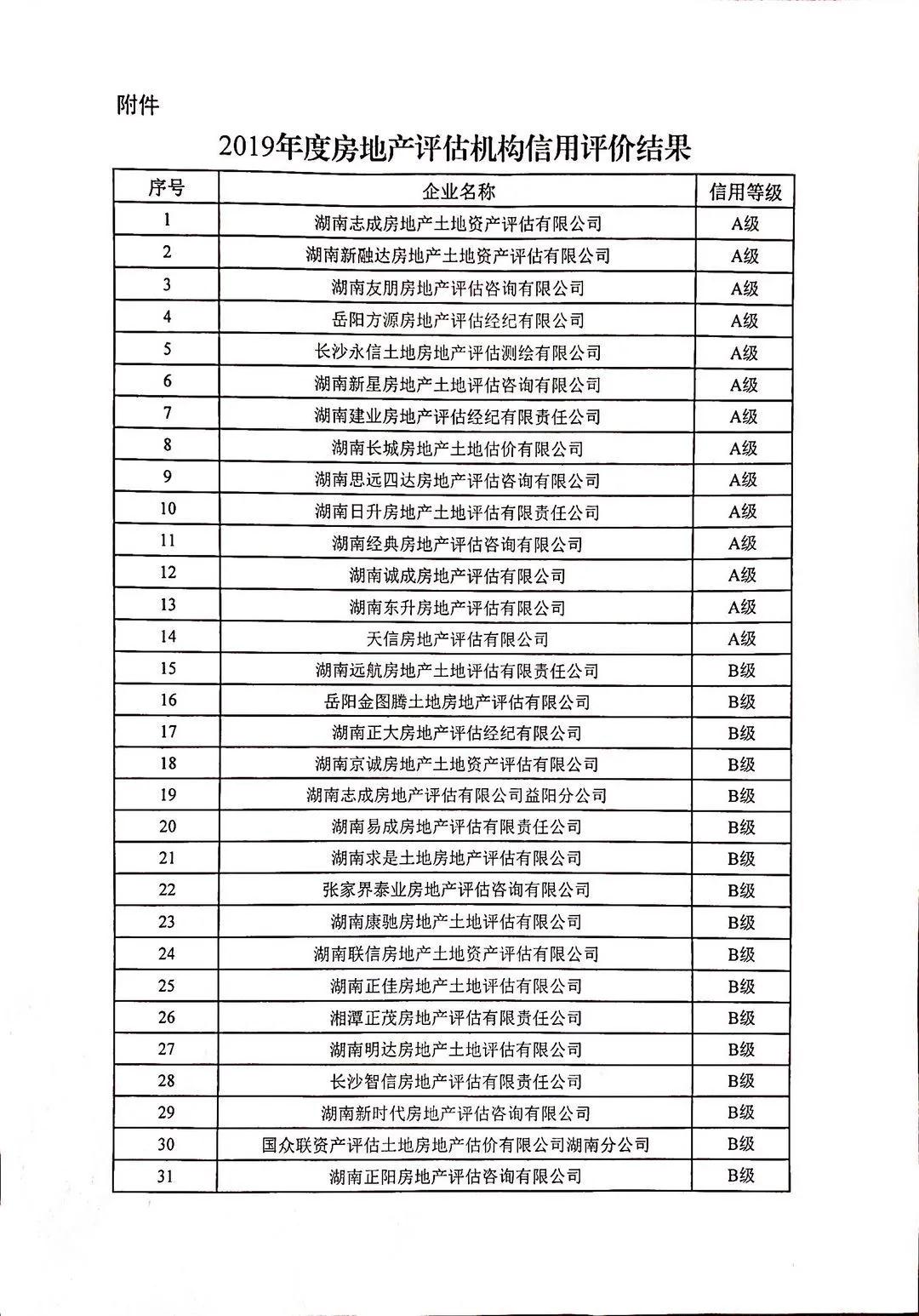關(guān)于2019年度房地產(chǎn)評估機構(gòu)信用評價結(jié)果的公告