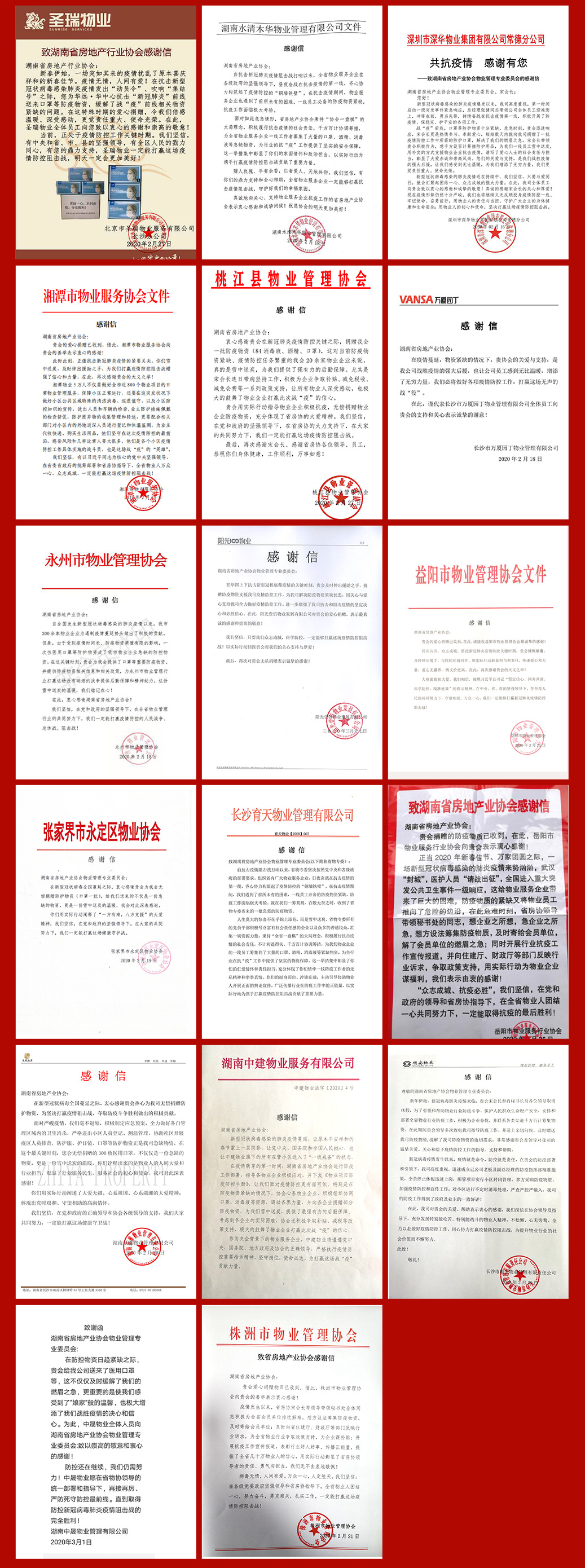 自疫情發(fā)生以來,湖南省房協(xié)向全社會發(fā)出倡議,積極募集防疫物資,向會員單位進行捐贈,同時組織對各市州物業(yè)管理協(xié)會、各物業(yè)企業(yè)會員單位和非會員單位進行定向捐贈。當(dāng)協(xié)會致力于使我省房地產(chǎn)行業(yè)防疫工作得到更多關(guān)注和支持時,協(xié)會收到來自市州協(xié)會和會員單位的感謝信。
