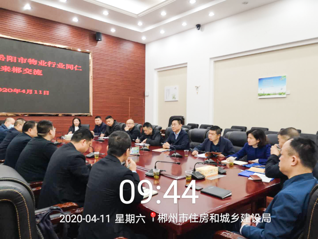 為促進友好協會的溝通,有效解決物業服務過程中涉及的相關問題,2020年4月11日上午,岳陽市物業服務行業協會來郴州物協開展物業管理工作交流座談會。參加本次座談會的有:岳陽市物業服務行業協會一行十人、郴州市住房和城鄉建設局物管科曹毅科長、郴州物協秘書長鄧學軍、輪值會長熊琦、黃志華、李海軍及協會部分專家。