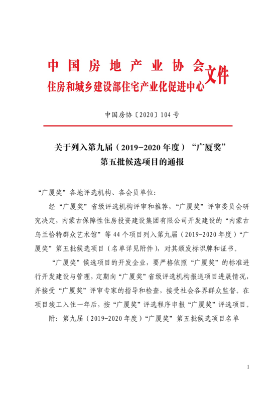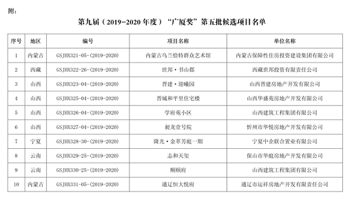 (附:關(guān)于列入第九屆(2019-2020年度)“廣廈獎”第五批候選項(xiàng)目的通報)