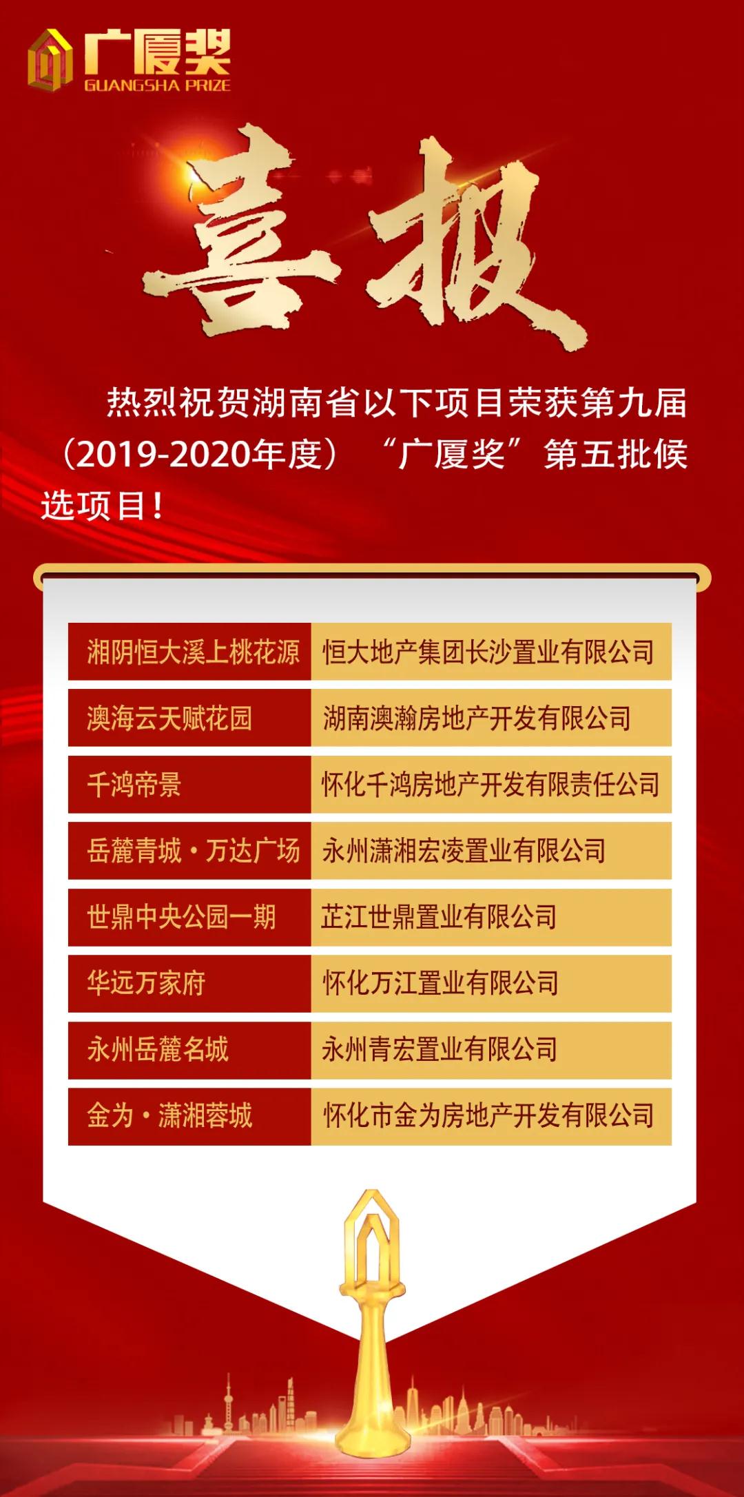 10月27日,由中國房地產(chǎn)業(yè)協(xié)會、住房和城鄉(xiāng)建設(shè)部住宅產(chǎn)業(yè)化促進(jìn)中心共同組織的第九屆(2019-2020)年度 “廣廈獎”第五批候選項(xiàng)目名單重磅出爐!經(jīng)湖南省房地產(chǎn)業(yè)協(xié)會初審?fù)扑]的八家會員單位項(xiàng)目榮獲殊榮!我省也是此批“廣廈獎”入選候選項(xiàng)目最多的省份!