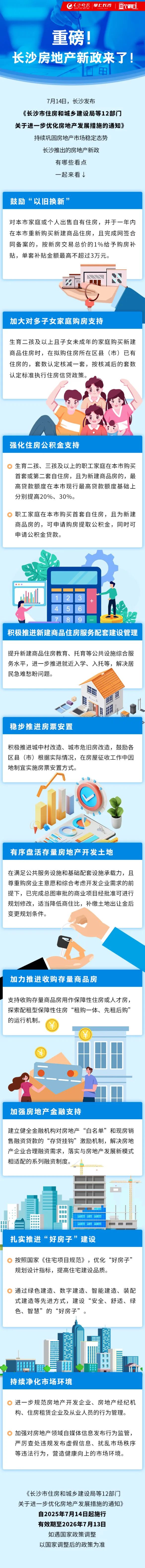 《通知》自2025年7月14日起施行,有效期為一年。同時,市直相關部門將結合實際情況進一步細化對應舉措。市住房城鄉建設局相關負責人表示,通過供給端、需求端、政策端協同發力,將進一步穩定市場預期,確保長沙房地產市場持續平穩健康發展。
