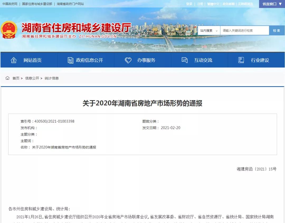 近日,湖南省住建廳發(fā)布《關于2020年湖南省房地產市場形勢的通報》,總體表現為投資穩(wěn)步回升。