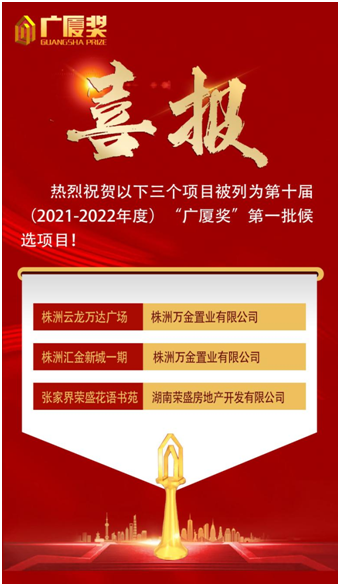 3月31日,由中國房地產(chǎn)業(yè)協(xié)會、住房和城鄉(xiāng)建設(shè)部住宅產(chǎn)業(yè)化促進(jìn)中心共同組織的第十屆(2021-2022年度) “廣廈獎”第一批候選項目名單重磅出爐!經(jīng)湖南省房地產(chǎn)業(yè)協(xié)會推薦的三個項目榮獲殊榮!