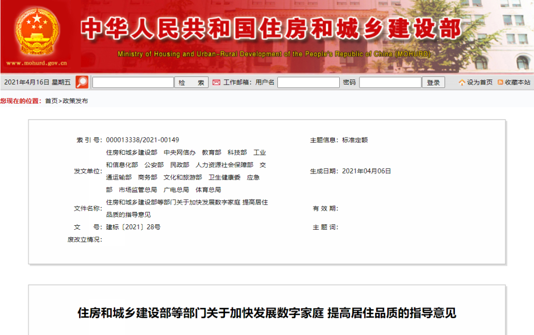 第一建聞 | 住房和城鄉(xiāng)建設(shè)部等部門:加快發(fā)展數(shù)字家庭 提高居住品質(zhì)