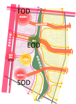 湖橡片區(qū)項目定位為產(chǎn)城融合新實施、未來社區(qū)新載體,擬按照“產(chǎn)業(yè)導(dǎo)入、醫(yī)城融合”的理念規(guī)劃,采用SOD+EOD+TOD的發(fā)展模式實施。