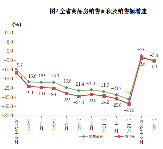 今年一季度,隨著經濟整體企穩回升,全省商品房銷售面積跌幅收窄,房地產市場趨穩回暖。
