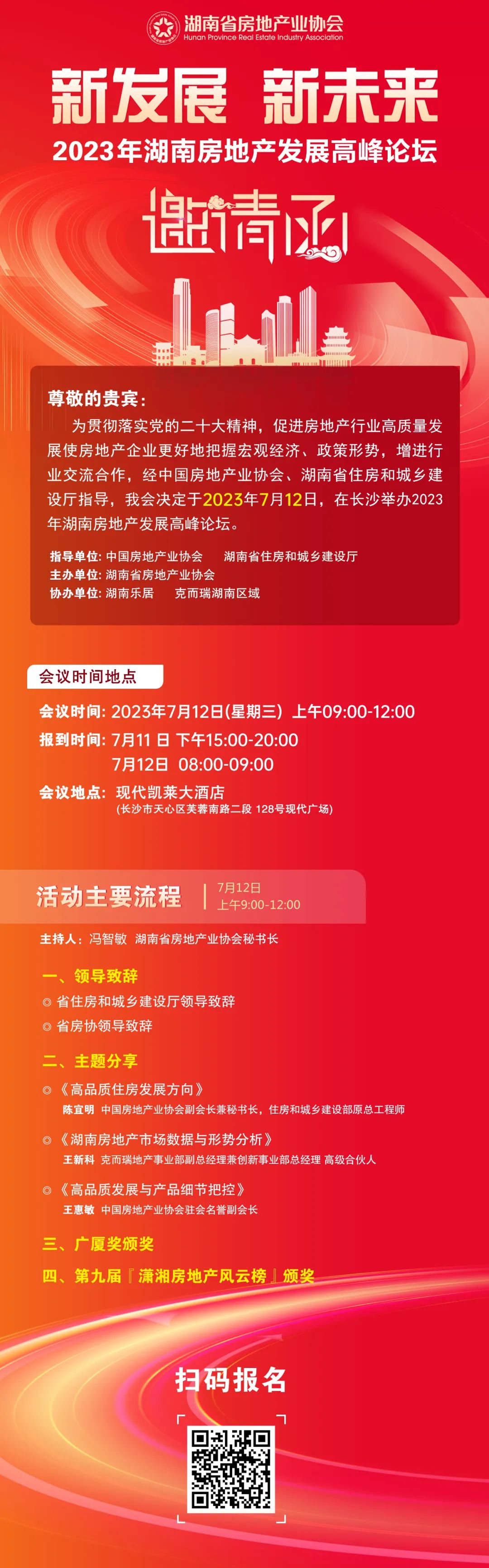 2023年湖南房地產(chǎn)發(fā)展高峰論壇即將舉行