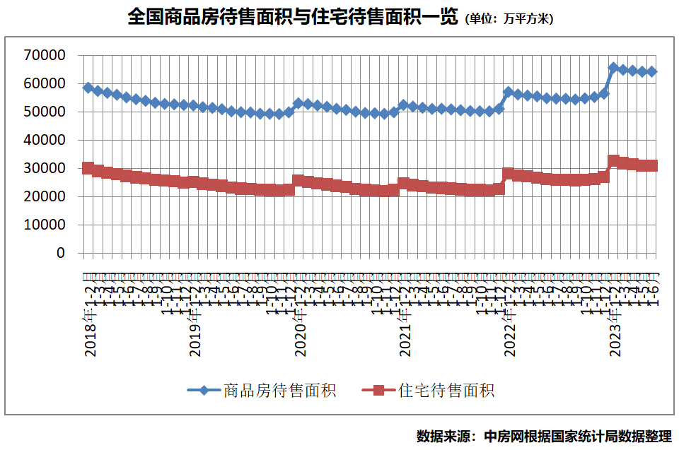 庫存方面,6月份商品房待售面積在連續三個月下降后有所回升,而住宅待售面積則繼續小幅下降。根據國家統計局數據,截至6月末,商品房待售面積64159萬平方米,同比增長17.0%。其中,住宅待售面積為31006萬平方米,同比增長18.0%。