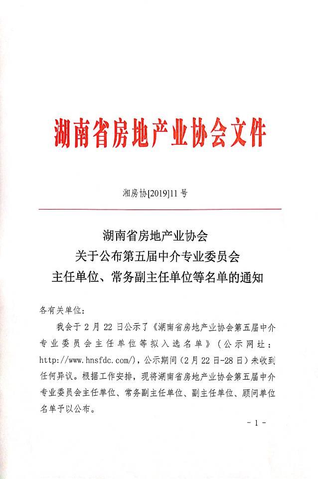 關于公布第五屆中介專業委員會主任單位、常務副主任單位等名單的通知