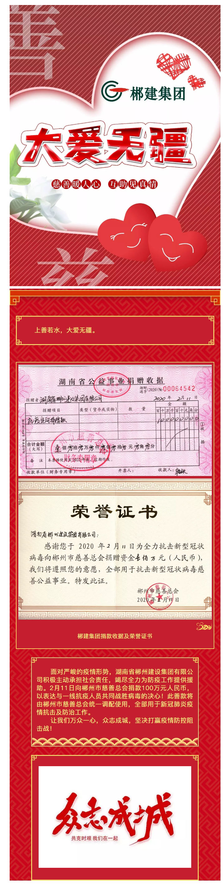郴建集團向郴州市慈善總會捐款壹佰萬元抗擊疫情