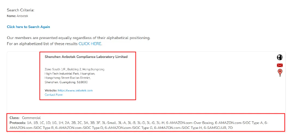 4. 根據(jù)名稱搜索 Anbotek 實(shí)驗(yàn)室,將會(huì)顯示 Anbotek 實(shí)驗(yàn)室的相關(guān)信息及相關(guān)授權(quán)標(biāo)準(zhǔn)。