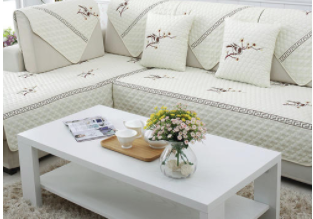2、棉布,棉布,柔軟、服帖,使用時能貼合沙發曲線,夏天吸汗,冬天隔涼,是舒適品。圖案經人工拼接而成,配上繡花,再加上獨特的蕾絲花邊,更顯獨特。
