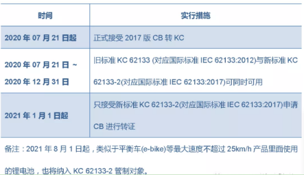 2. 新制定的KC 62133-2版本標(biāo)準(zhǔn)(CB僅適用于 IEC 62133:2017)于2020年7月21起開始實(shí)行