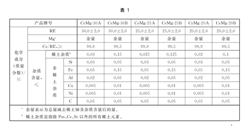 鈰鎂合金的外觀質(zhì)量檢測(cè)要求產(chǎn)品應(yīng)該是鑄態(tài)合金。表面或其斷口應(yīng)該呈現(xiàn)銀灰色,并且要求潔凈,不能有可見的夾雜物和氧化脫落粉末。GB/T 39125-2020將鈰鎂合金牌號(hào)一共分為CeMg-30A,CeMg-30B,CeMg-25A,CeMg-25B,CeMg-20A,CeMg-20B共8個(gè)。牌號(hào)劃分是以化學(xué)成分進(jìn)行區(qū)分的。鋪鎂合金的化學(xué)成分檢測(cè)項(xiàng)目主要為缺元素含量檢測(cè)、鈰元素含量檢測(cè)、鎂元素含量檢測(cè)、稀士雜質(zhì)含量檢測(cè)、非稀土雜質(zhì)含量檢測(cè)。其中非稀土雜質(zhì)含量又分為硅元素、鐵元素、鋁元素、銅元素、鎳元素、碳元素。