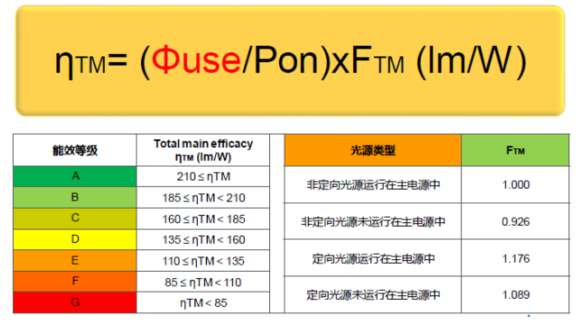 光源的能效等級和光源類型劃分FTM如下: