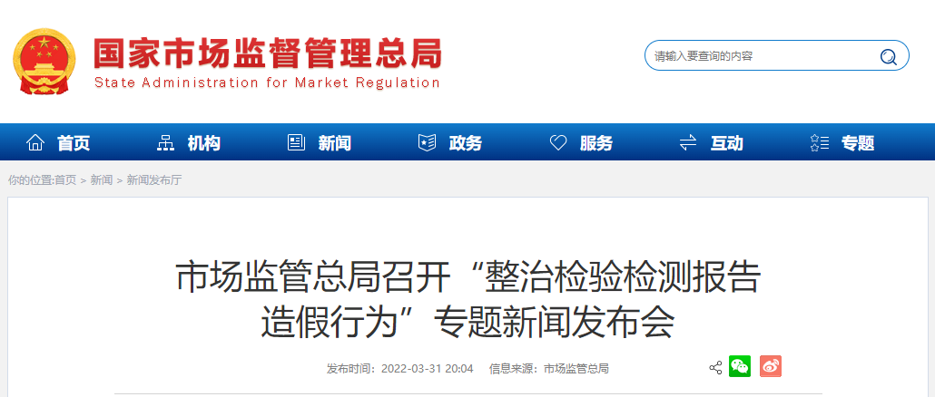 2022年3月31日,國家市場監(jiān)督管理總局以“整治檢驗檢測報告造假行為”為專題召開新聞發(fā)布從2021年度各級市場監(jiān)管部門已經(jīng)查處的檢驗檢測違法違規(guī)案件中,選取了17個涉及檢驗檢測報告造假的典型案例進行集中曝光。