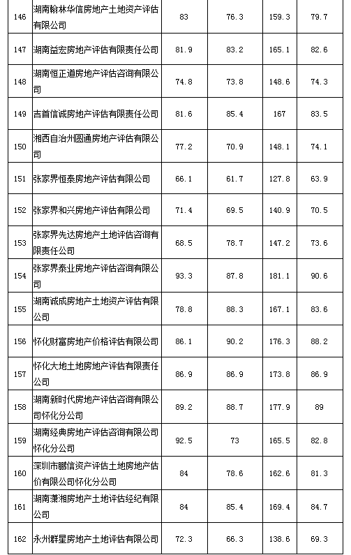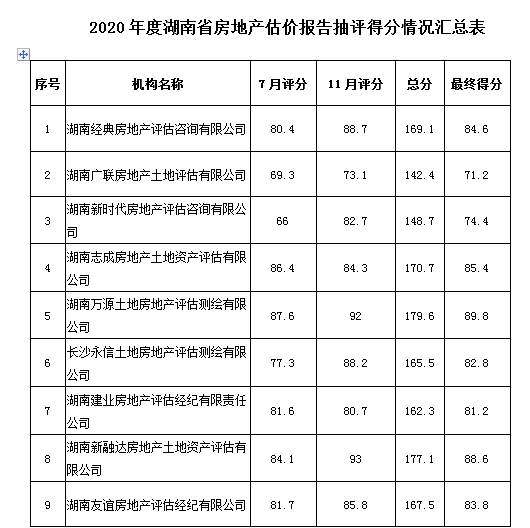 2020年度湖南省房地產(chǎn)估價(jià)報(bào)告抽評得分情況公示