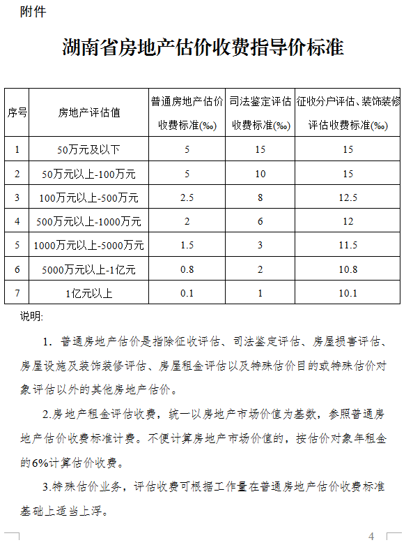 附件:湖南省房地產估價收費指導意見