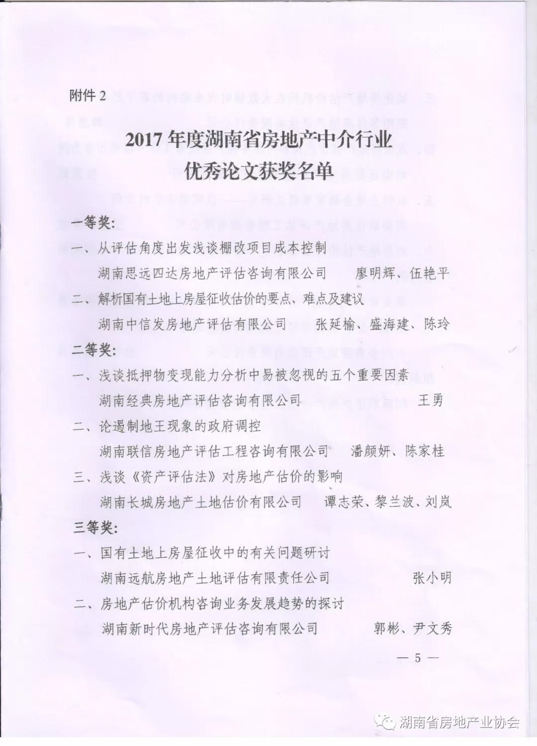 表彰2017年度全省房地產中介行業 精選報告和優秀論文