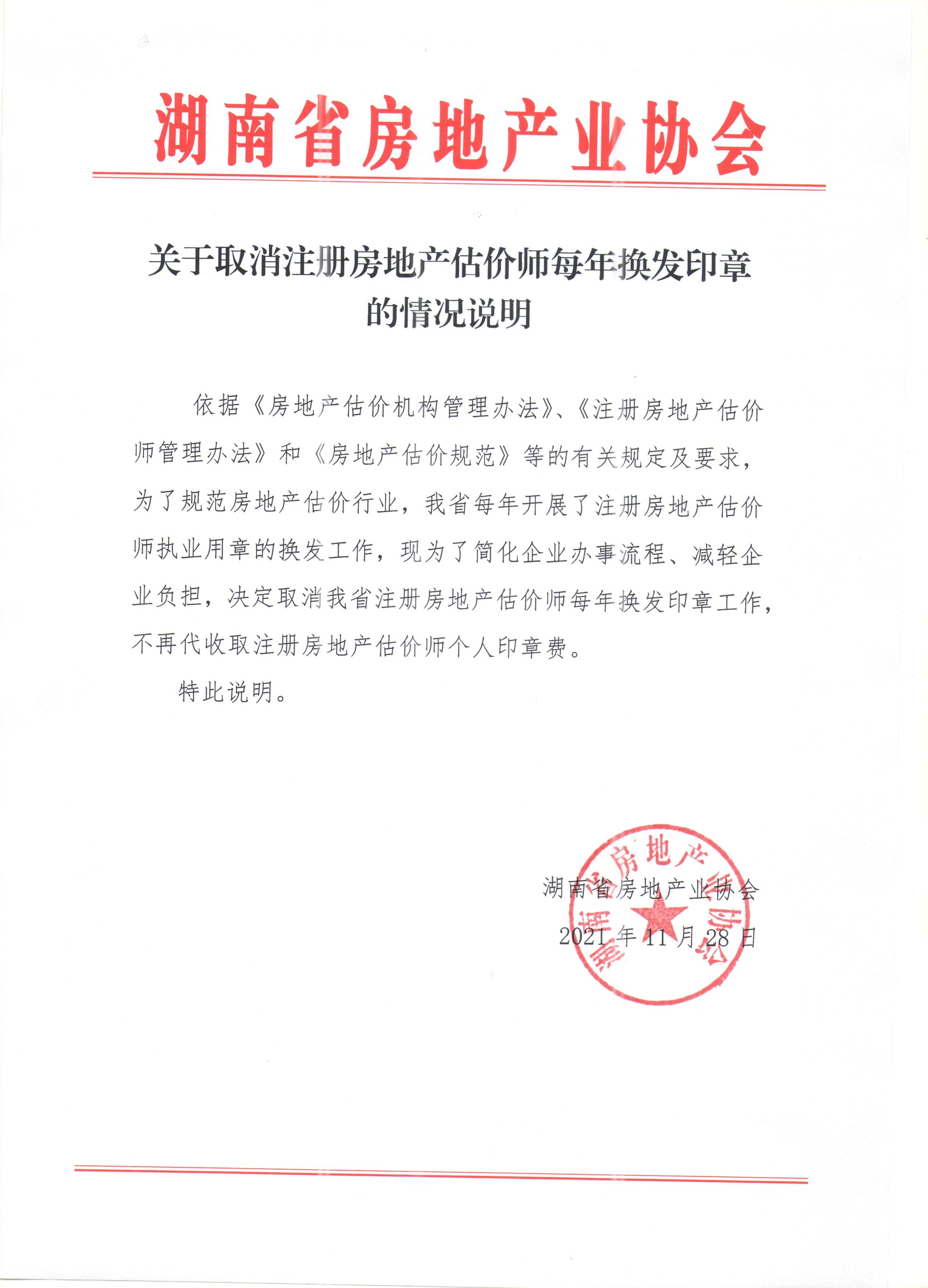 關(guān)于取消注冊(cè)房地產(chǎn)估價(jià)師每年換發(fā)印章的情況說明