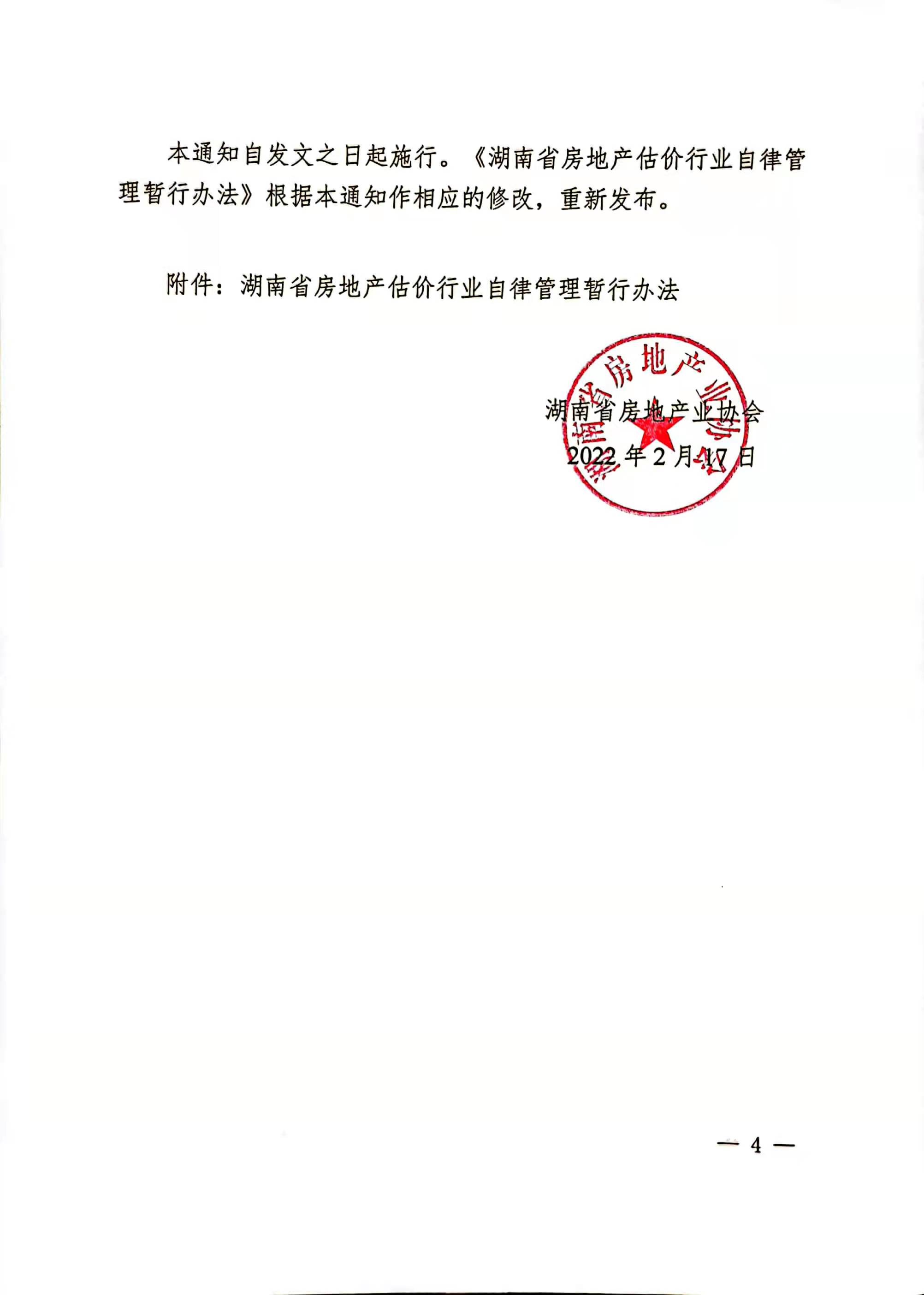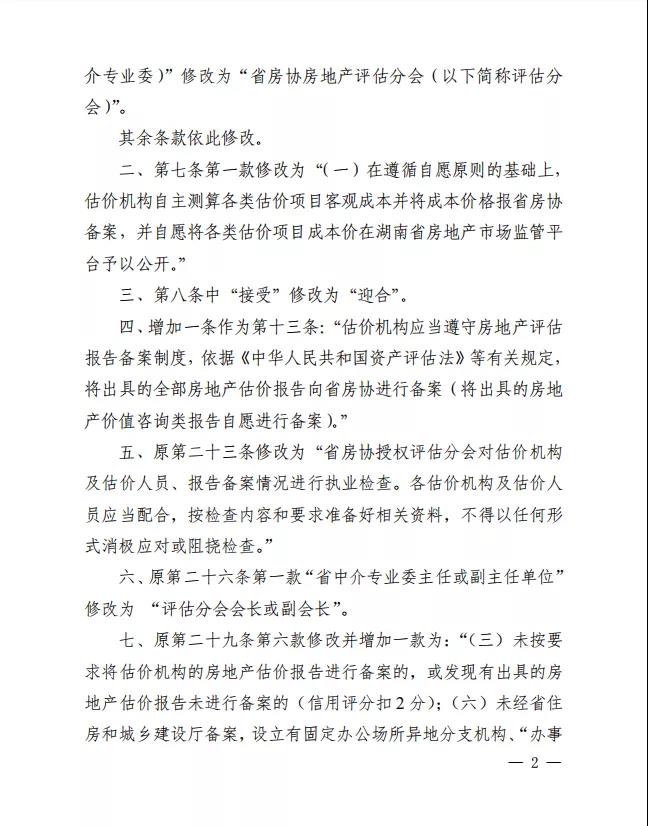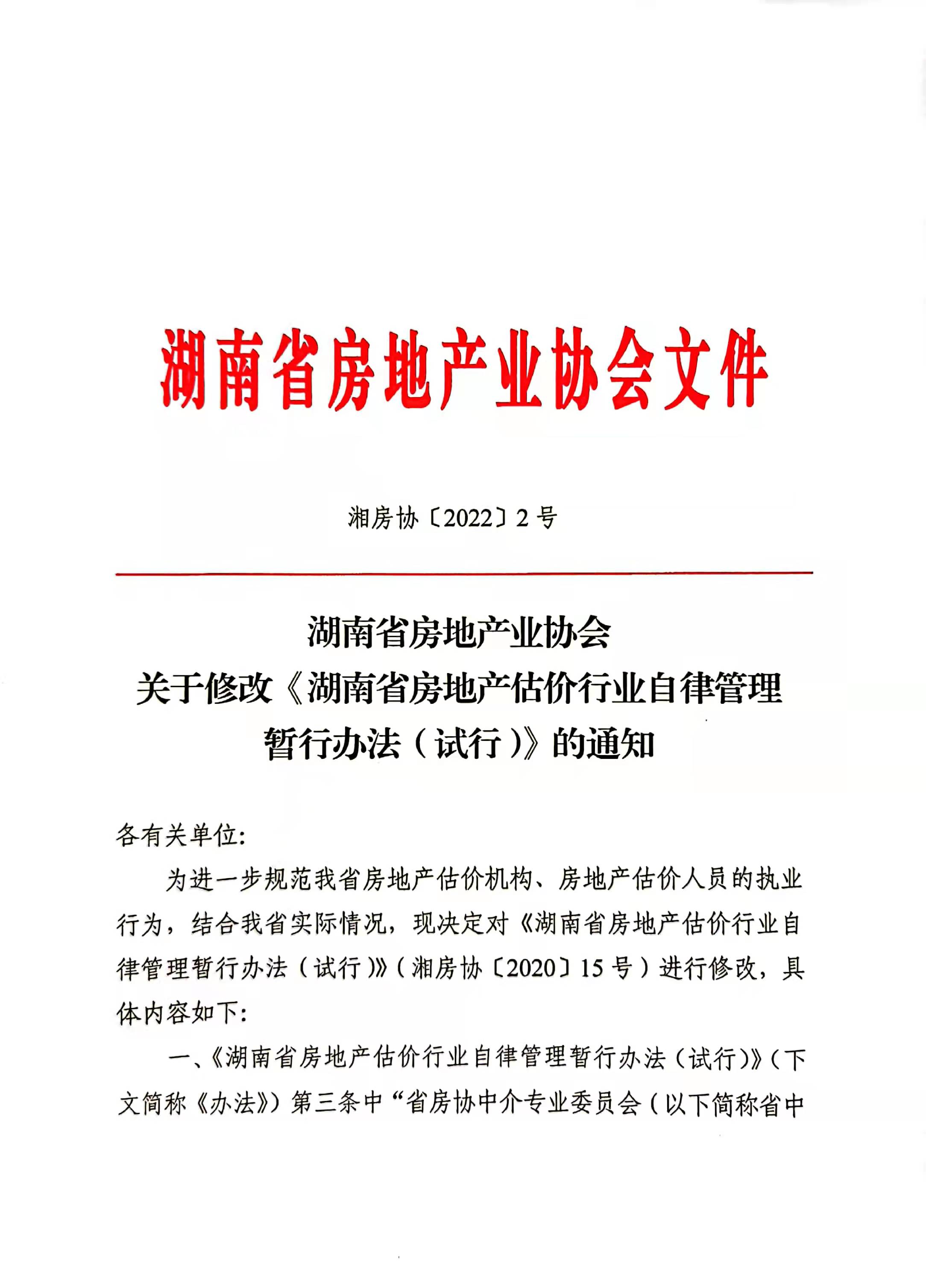 關于修改《湖南省房地產估價行業自律管理暫行辦法(試行)》的通知