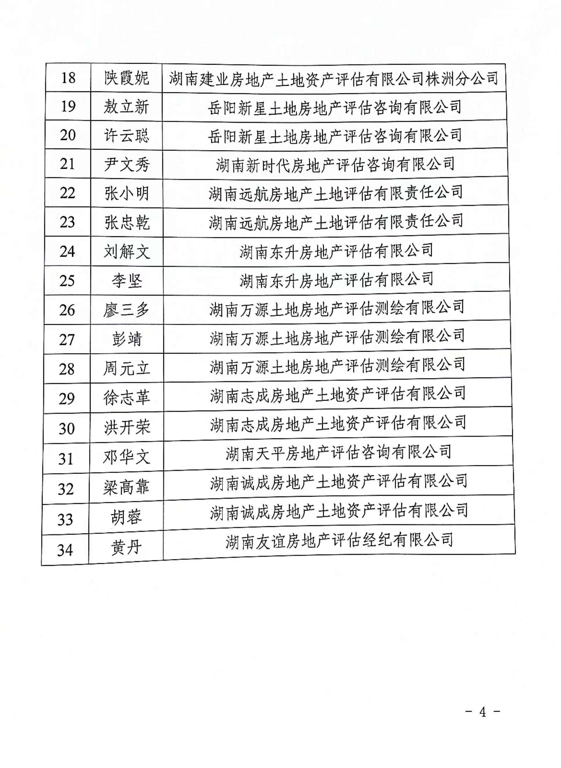 關于公布湖南省注冊房地產估價師執業等級評定結果的通知