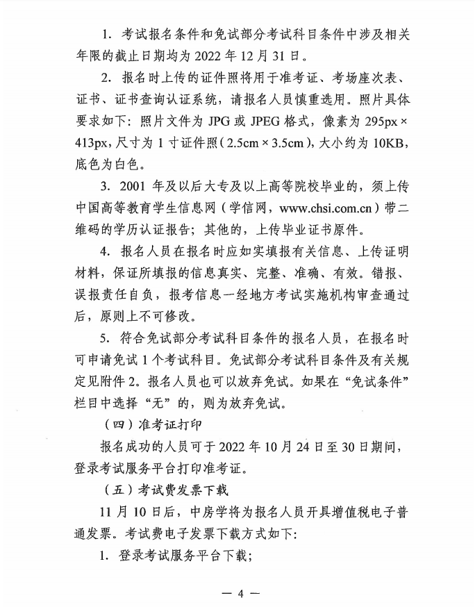 四、準考證打印:報名成功的人員可于2022年10月24日至30日期間,登錄考試服務平臺打印準考證。