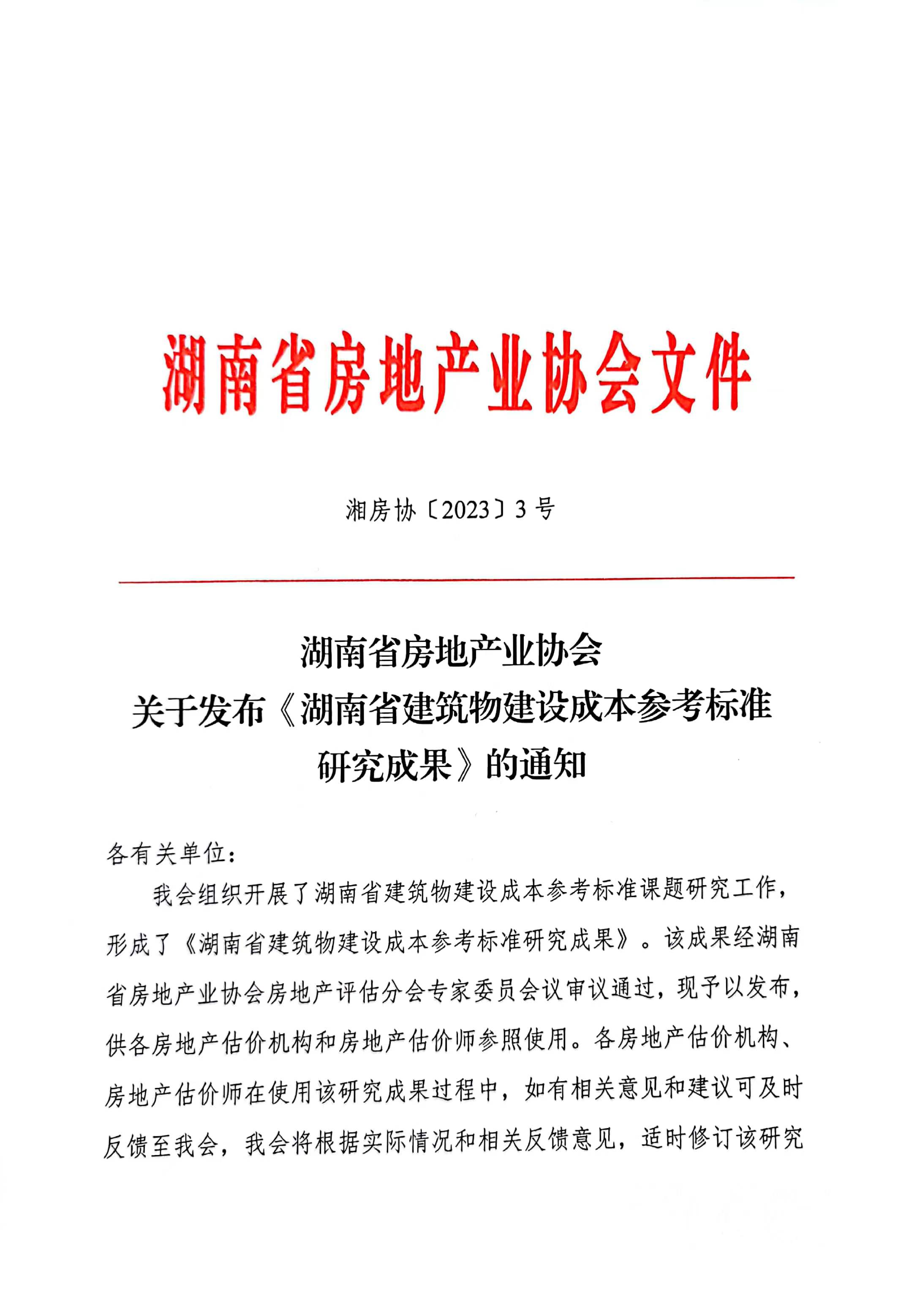 湖南省房地產(chǎn)業(yè)協(xié)會關(guān)于發(fā)布《湖南省建筑物建設(shè)成本參考標(biāo)準(zhǔn)研究成果》的通知