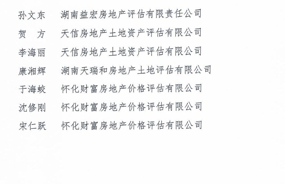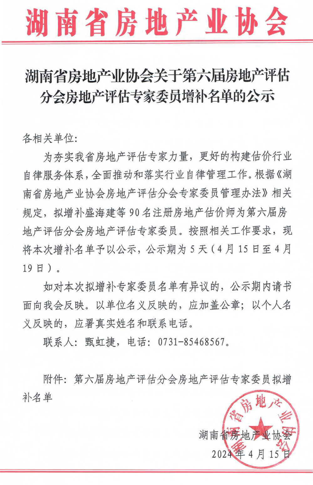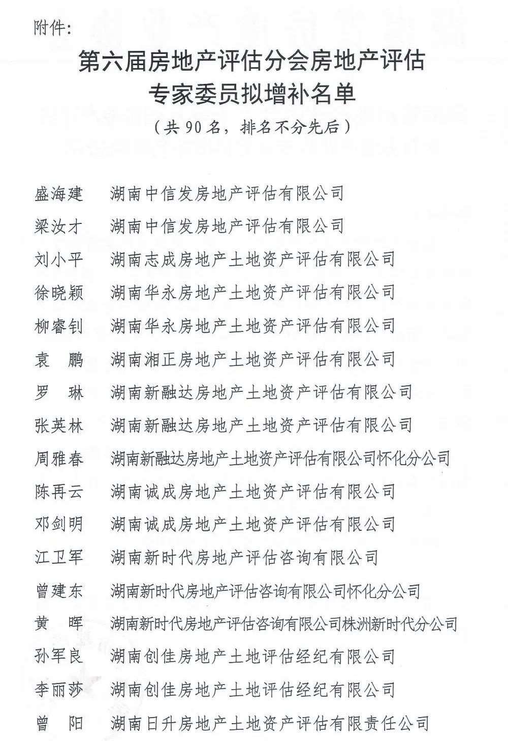 關(guān)于第六屆房地產(chǎn)評(píng)估分會(huì)房地產(chǎn)評(píng)估專家委員增補(bǔ)名單的公示