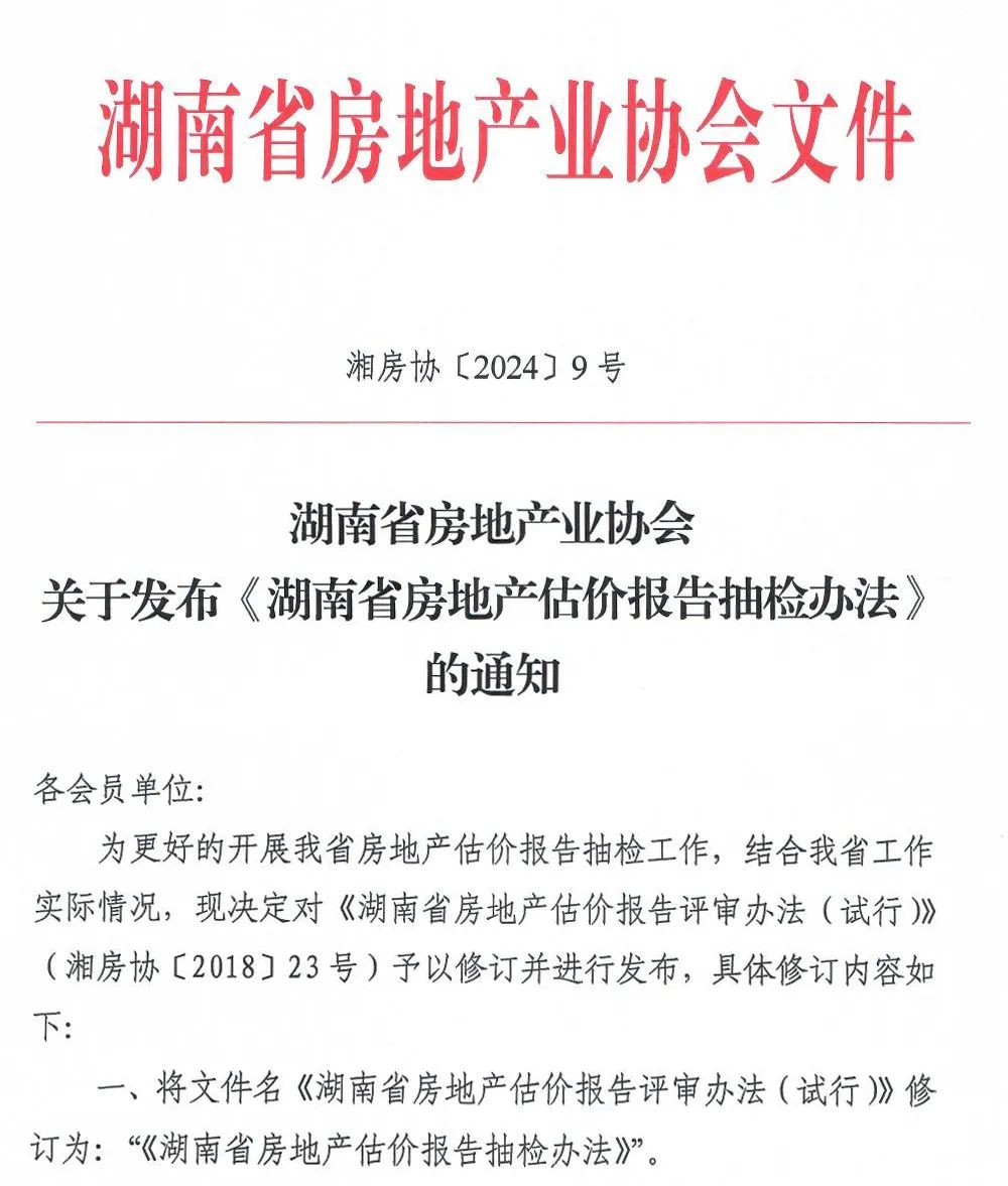 關于發布《湖南省房地產估價報告抽檢辦法》的通知