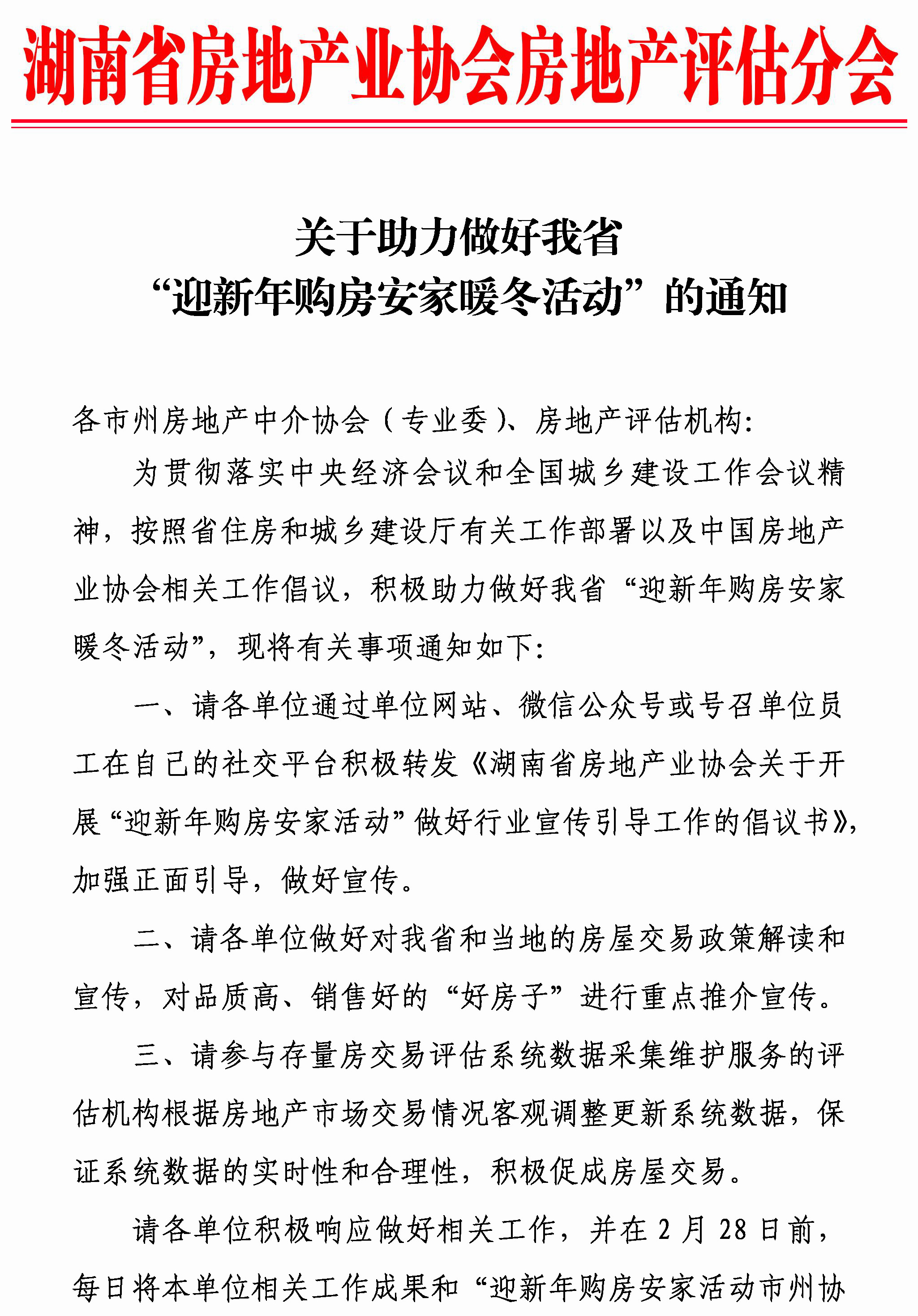 省房協倡導評估(中介)行業做好我省“迎新年購房安家暖冬活動”