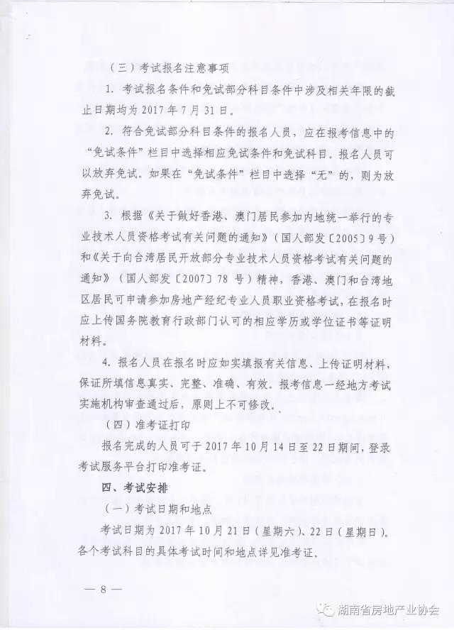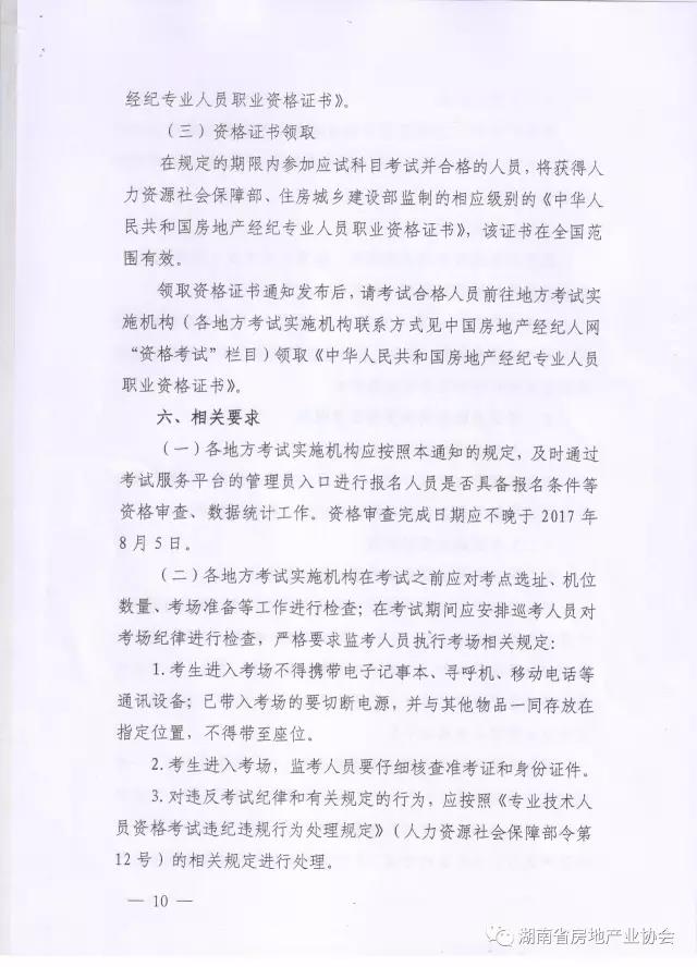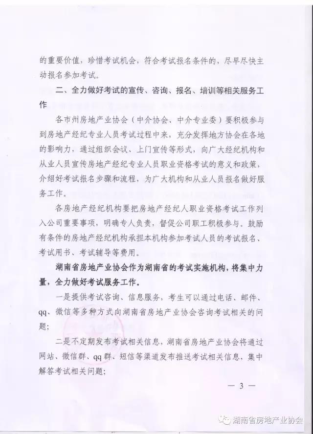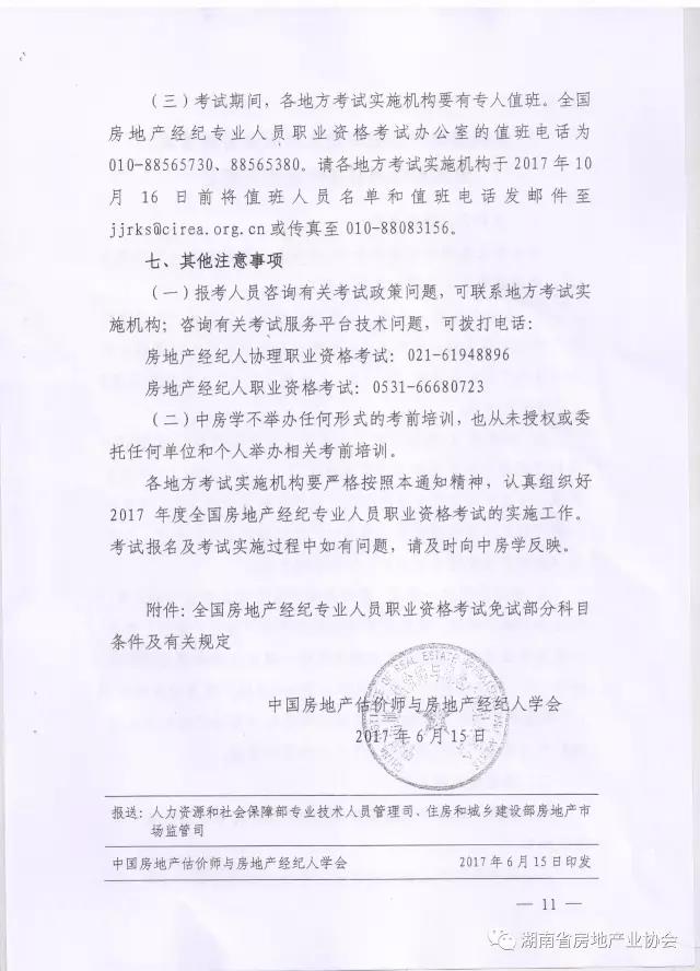 湖南省房地產業協會轉發《中國房地產估價師與房地產經紀人學會關于2017年度全國房地產經紀專業人員職業資格考試有關問題的通知》
