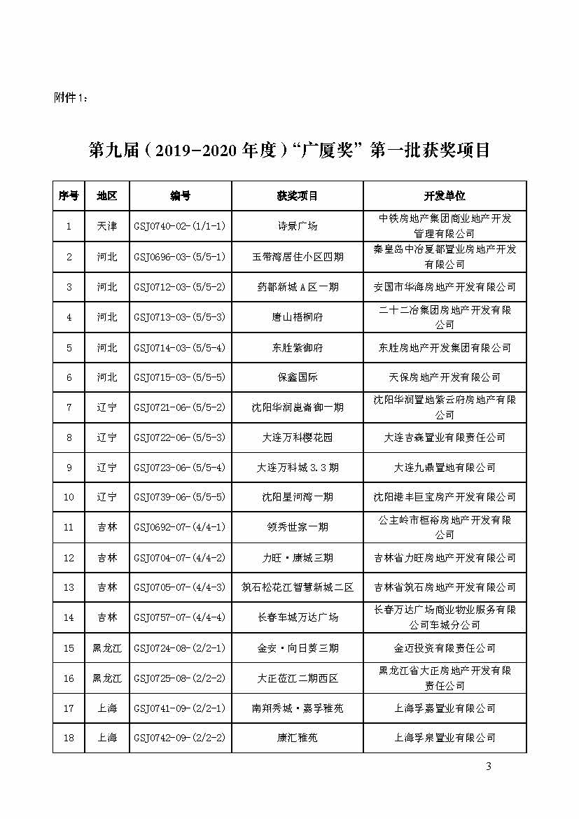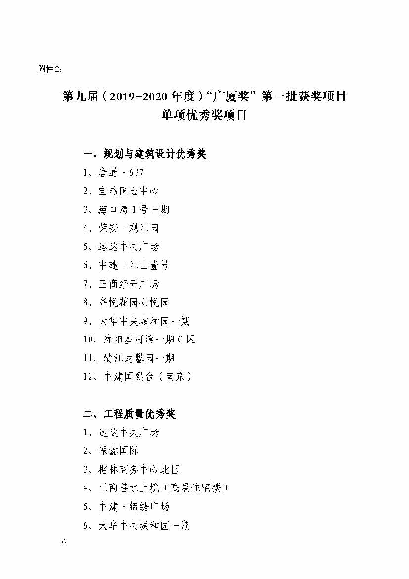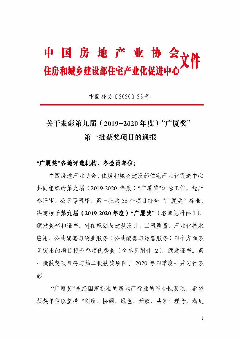 關(guān)于表彰第九屆(2019-2020 年度)“廣廈獎” 第一批獲獎項(xiàng)目的通報(bào)