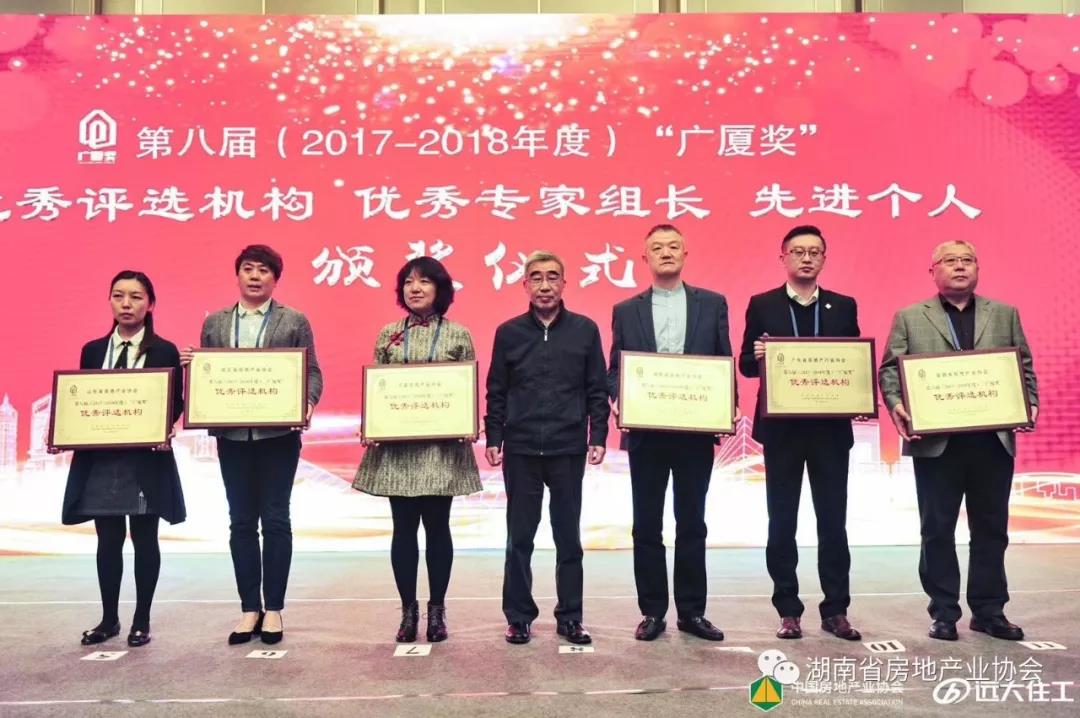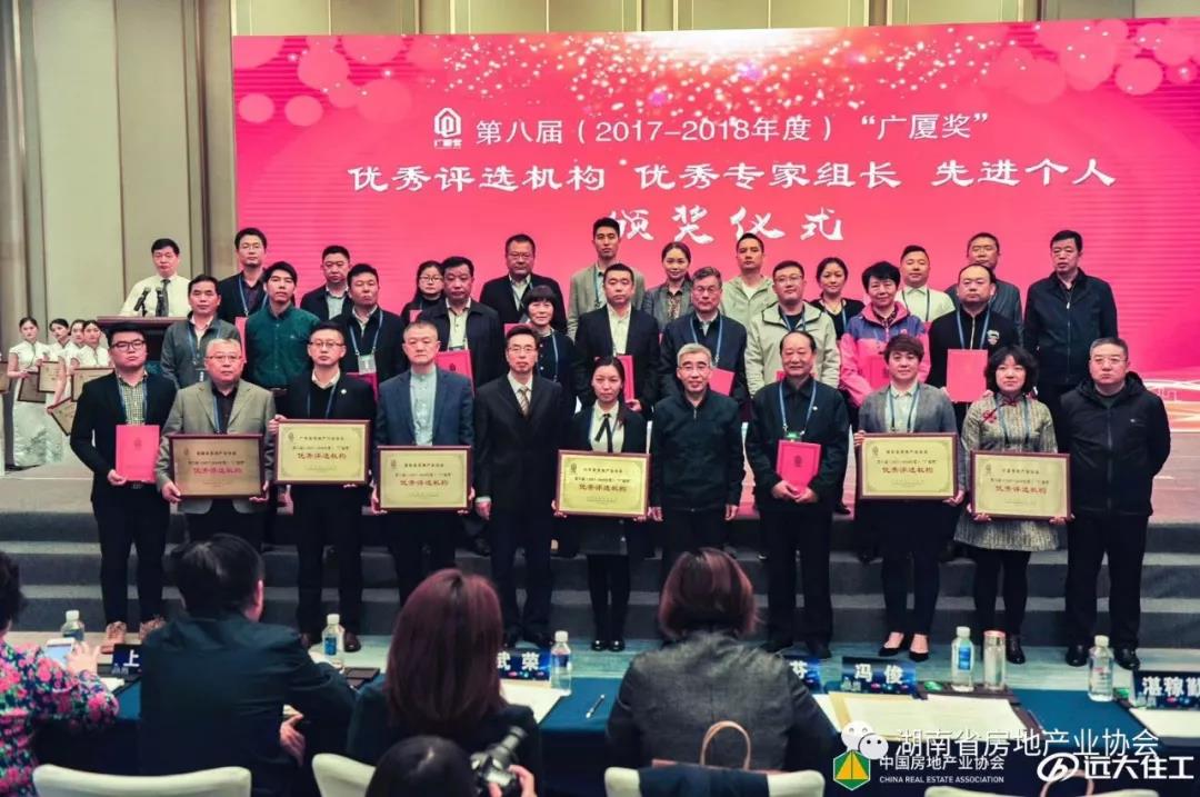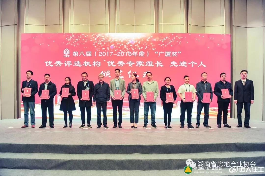 2019年4月11日,中國房地產業協會、住房和城鄉建設部住宅產業促進中心發布了《關于表彰第八屆(2017-2018年度)“廣廈獎”優秀評選機構、優秀專家組長和先進個人的通報》。湖南省房地產業協會獲評“廣廈獎”優秀評選機構;湖南省“廣廈獎”評審專家組組長,湖南省房地產業協會輪值會長陳浩、常務副會長兼秘書長宋瀧、開發專業委副秘書長曾慶樂獲評“廣廈獎”先進個人。